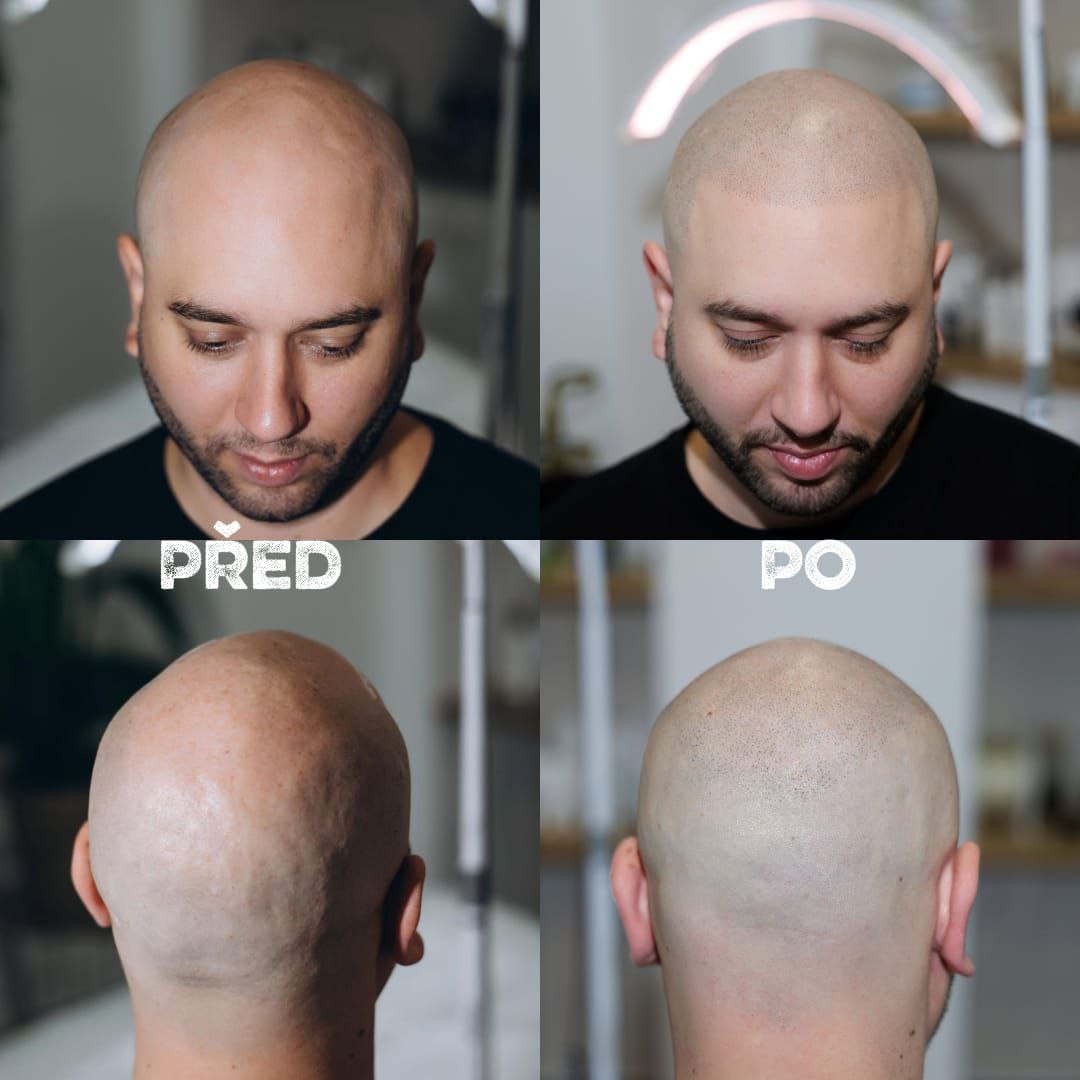 Navrhnu přirozený tvar nové vlasové linie a zvolím pigment tak, aby přirozeně ladil s odstínem vašich vlasů. Sám jsem touto procedurou prošel, takže mohu potvrdit, jak přirozeně výsledek vypadá naživo.
