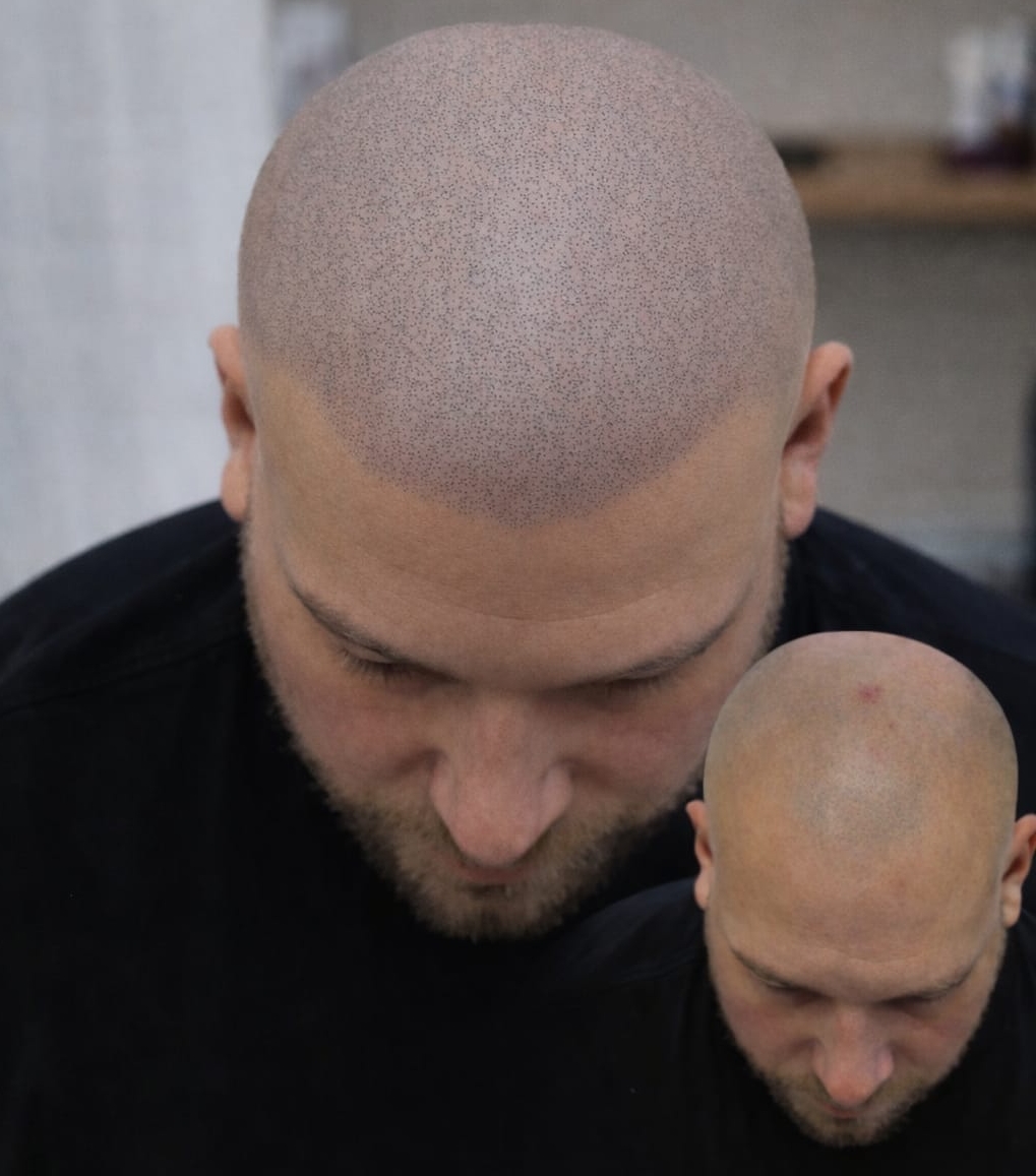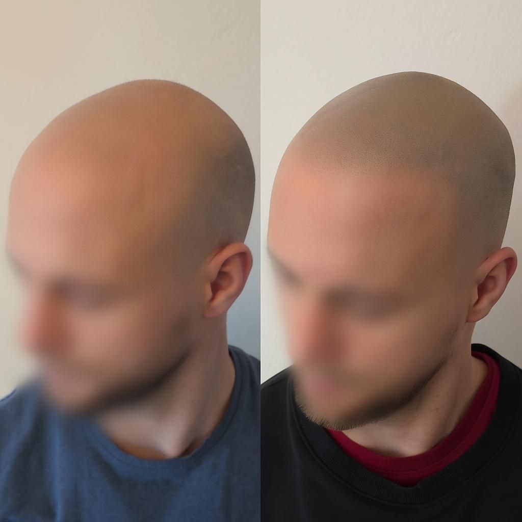 Při aplikaci používám speciální pigmenty, které napodobují vlasové folikuly a vytvářejí přirozený, realistický efekt. Tato metoda napodobuje střižení velmi krátkých vlasů, kdy hlava vypadá a jeví se jako čerstvě oholená. Obnoví se přirozená linie čela, která se důkladně mísí s vašimi stávajícími vlasy.